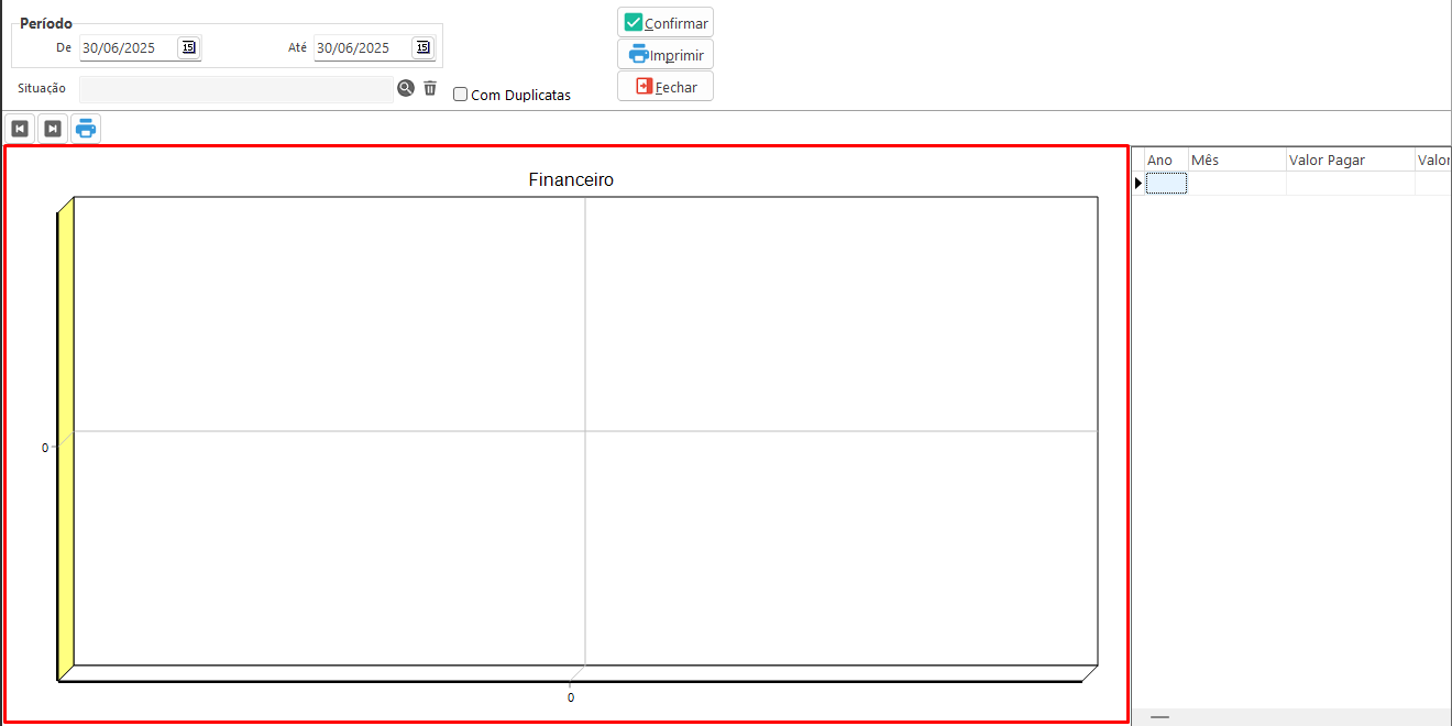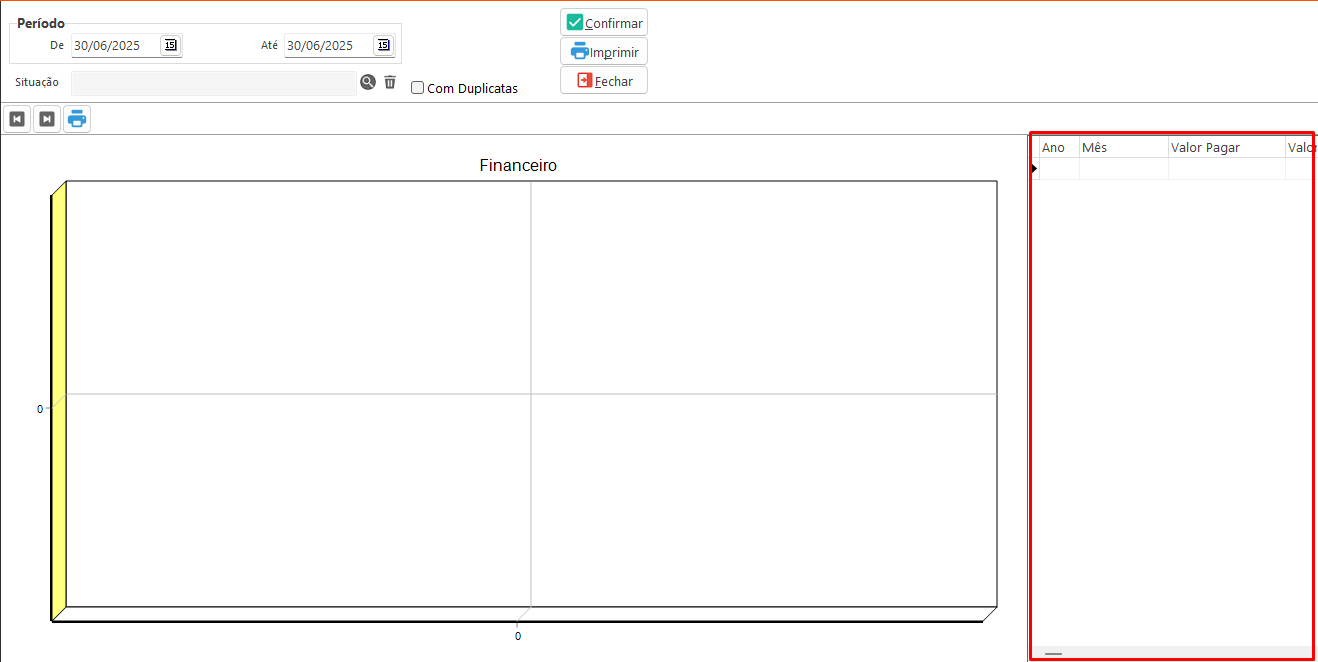 A tela Do Pagar e Receber tem como objetivo apresentar, de forma visual e analítica, os totais mensais de valores vinculados aos registros de contas a pagar e contas a receber.