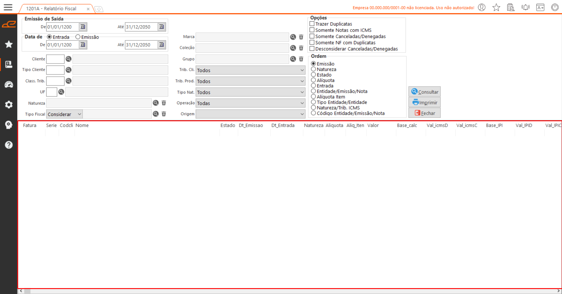 • Trib. Cli.: Filtro de seleção para o tipo tributário do cliente.