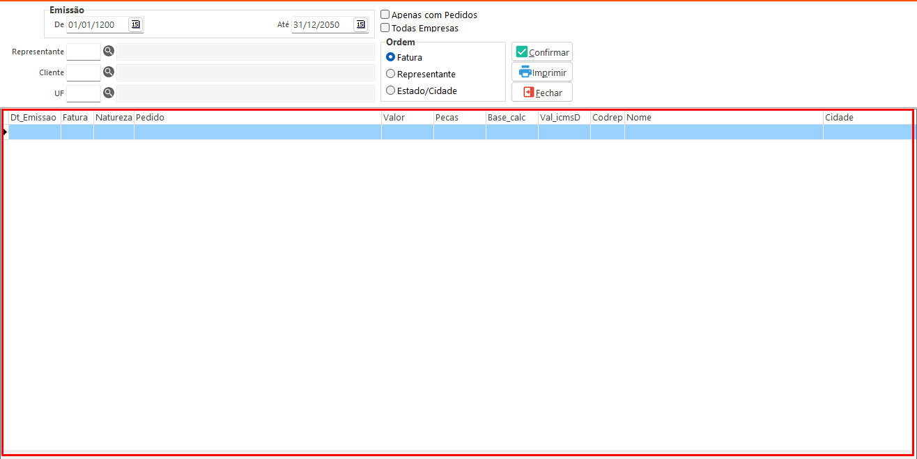 - Apenas com Pedidos: Filtra apenas os registros em que o campo Pedido dos itens da nota fiscal esteja preenchido.