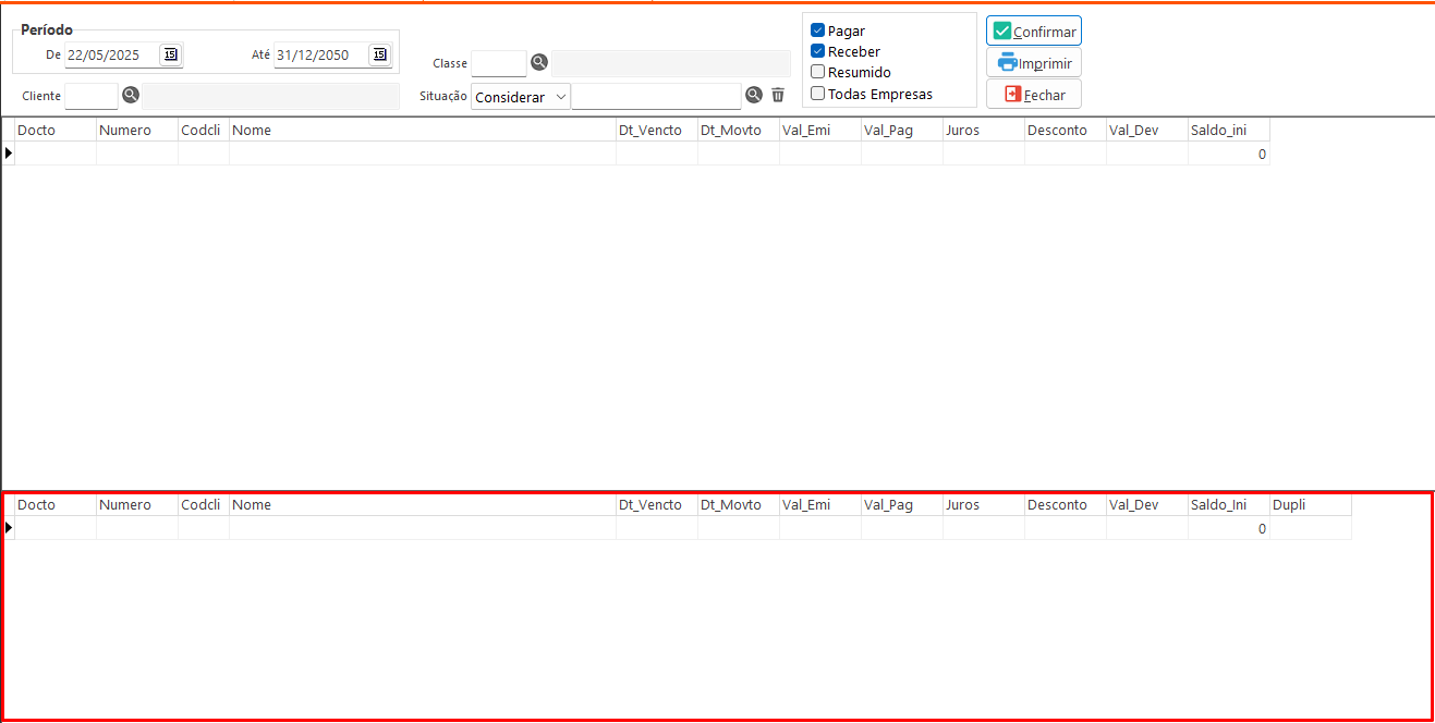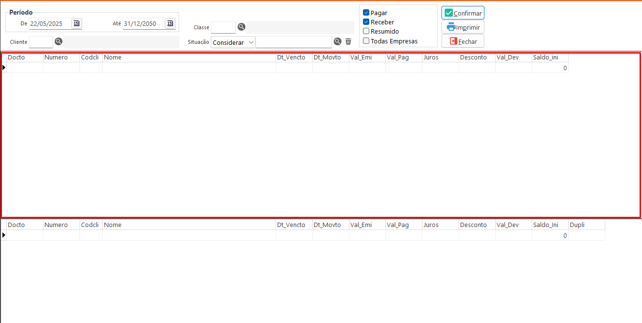 - Receber: Informa que serão considerados na consulta os registros do Contas a Receber.