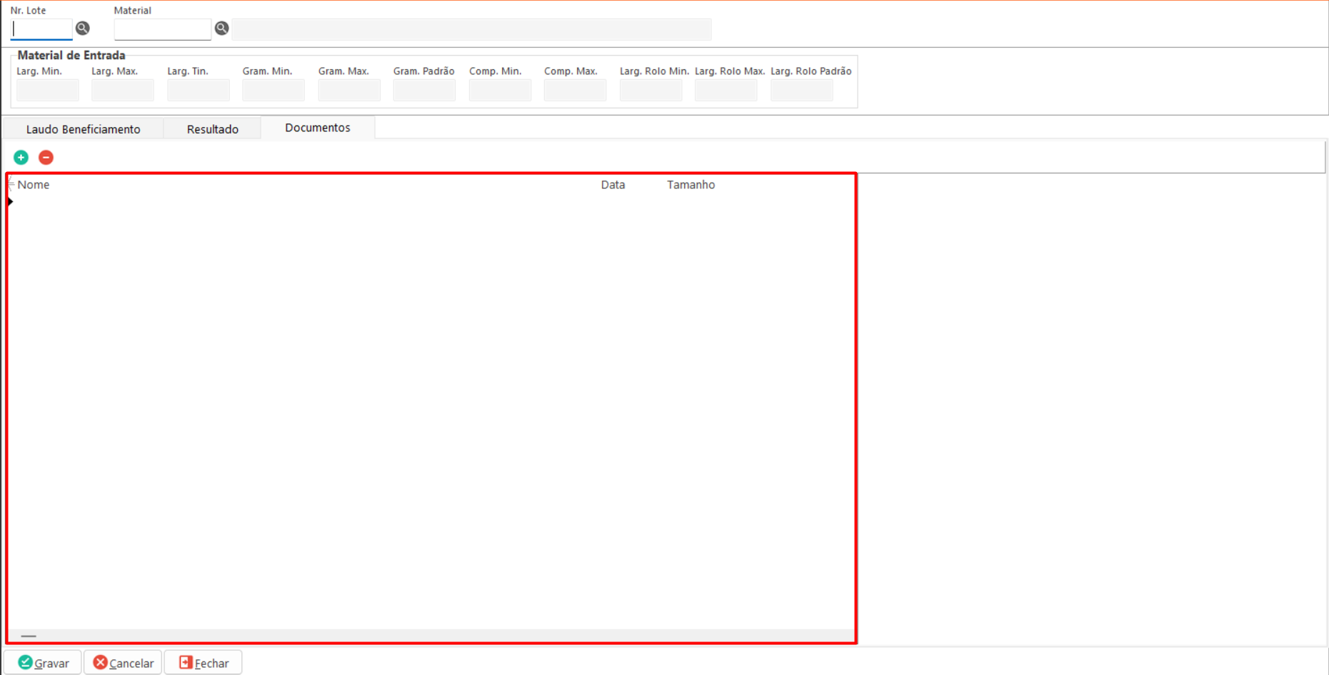 Aba destinada a anexar documentos e imagens ao laudo para Controle de Qualidade.
