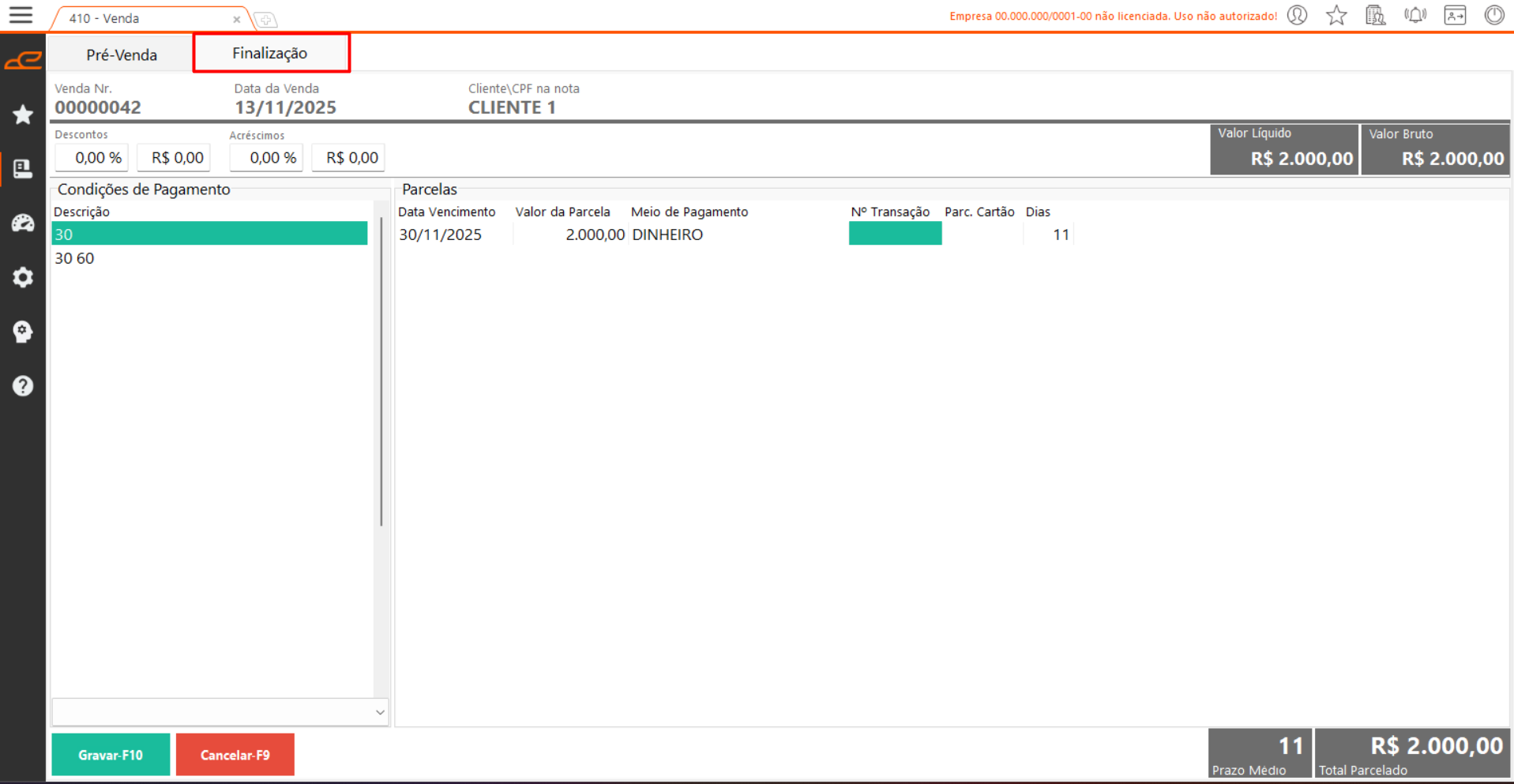• Venda Nr.: Apresenta o número da venda que está sendo finalizada.