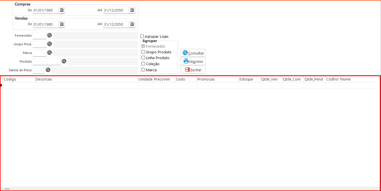- Imprimir: Gera a impressão do relatório WEcfVenCompra.prt.