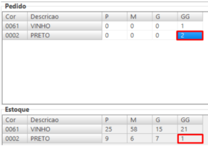 - No caso da imagem acima, o pedido tem quantidade 2 na cor “PRETO”, tamanho “GG”, neste caso